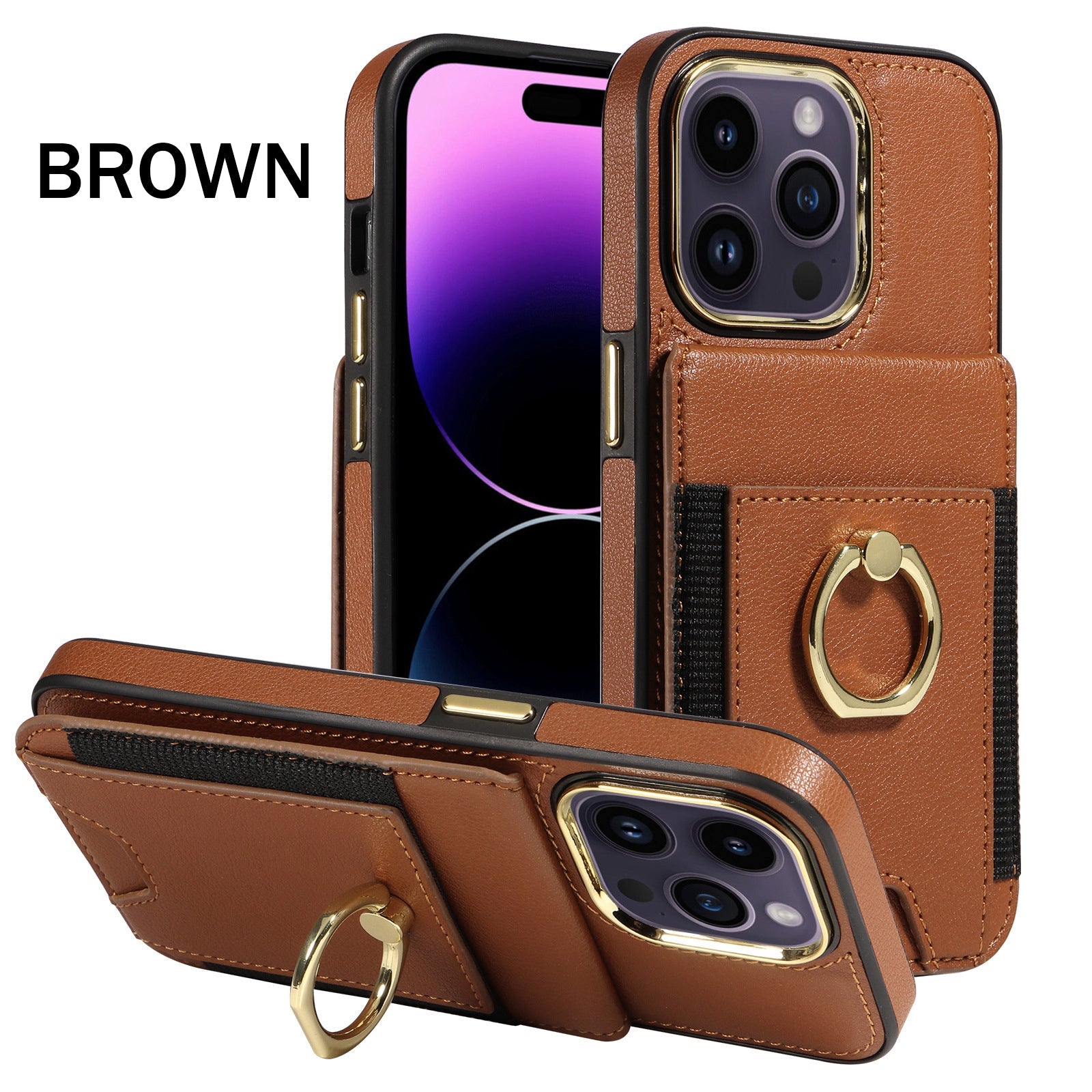 For iPhone15 Series Back Cover Ring Buckle Protection Leather Case