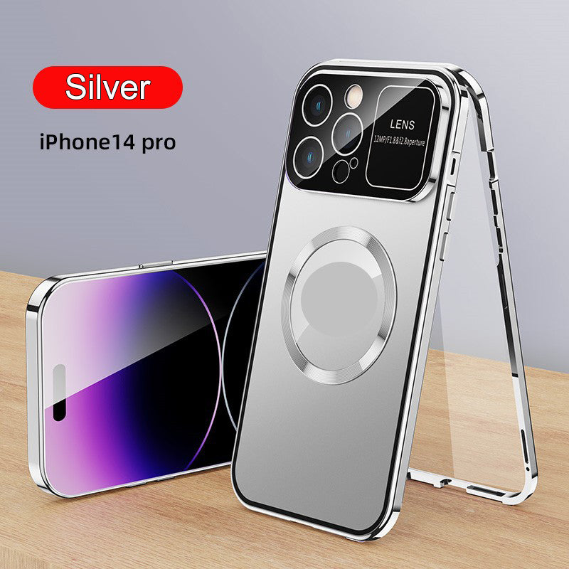 Double-Sided Glass Large Window Is Suitable For iPhone14 Series Magnetic Metal Frame Mobile Phone Case