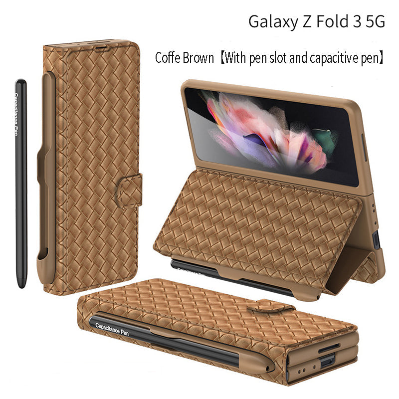 Buy a mobile phone case and get a free capacitive pen! Flip Pen Slot Phone Case Personalized Woven Leather Pattern ZFold3 Phone Case