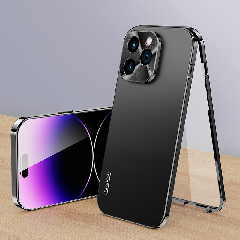 For iPhone14 Magnetic Double-sided Buckle Metal All-inclusive Phone Case