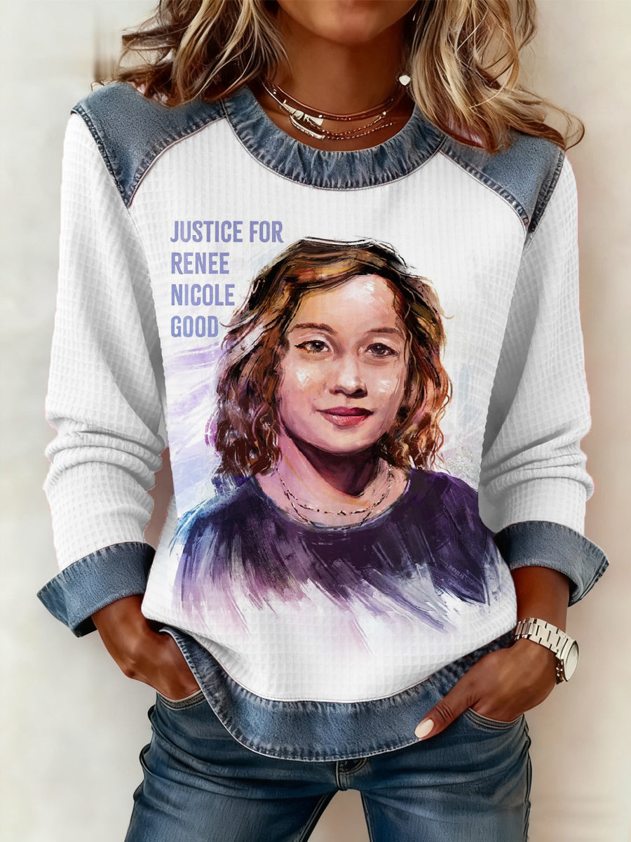 Women's Justice For Renee Nicole Good Denim Patchwork Top